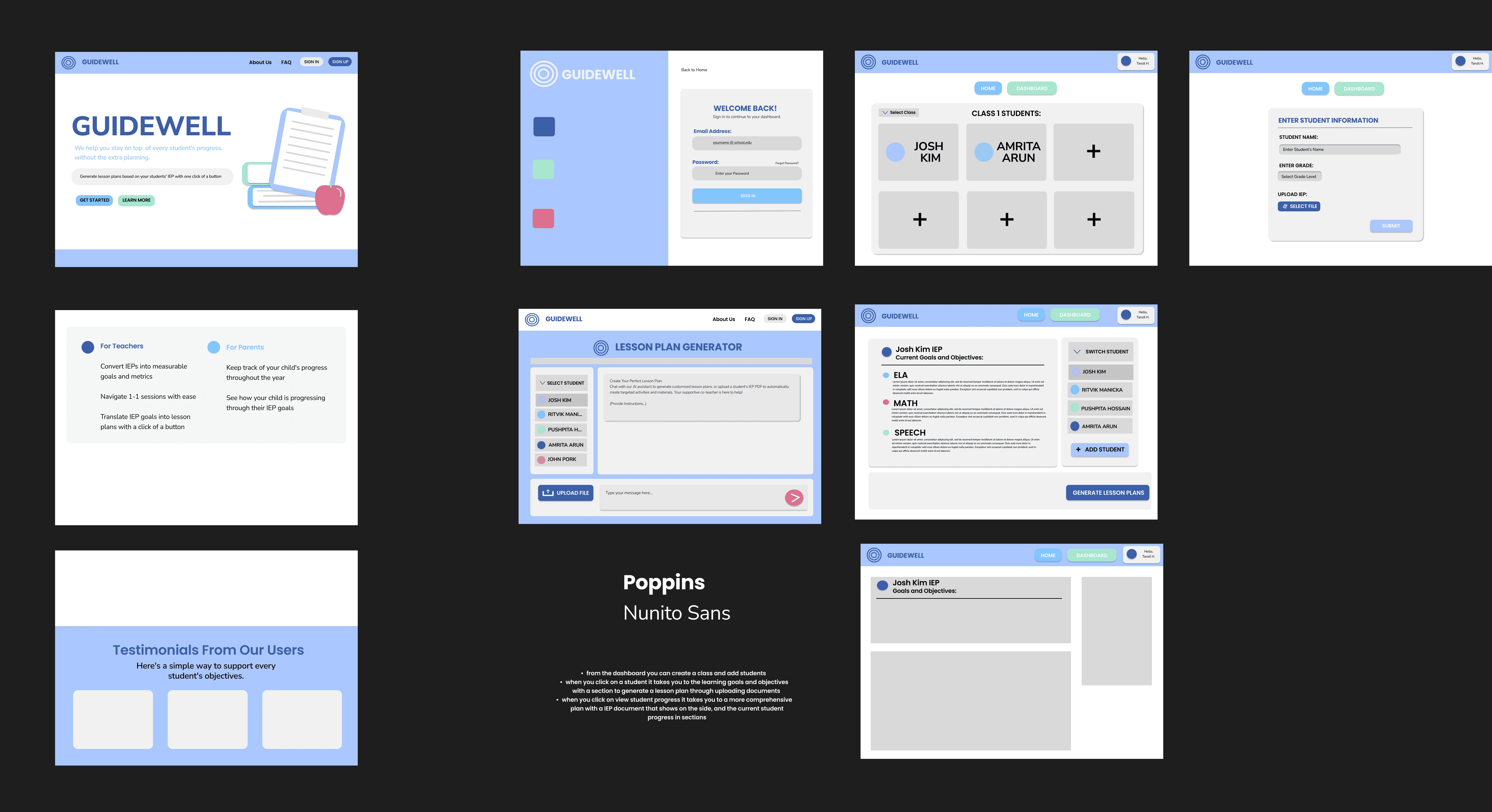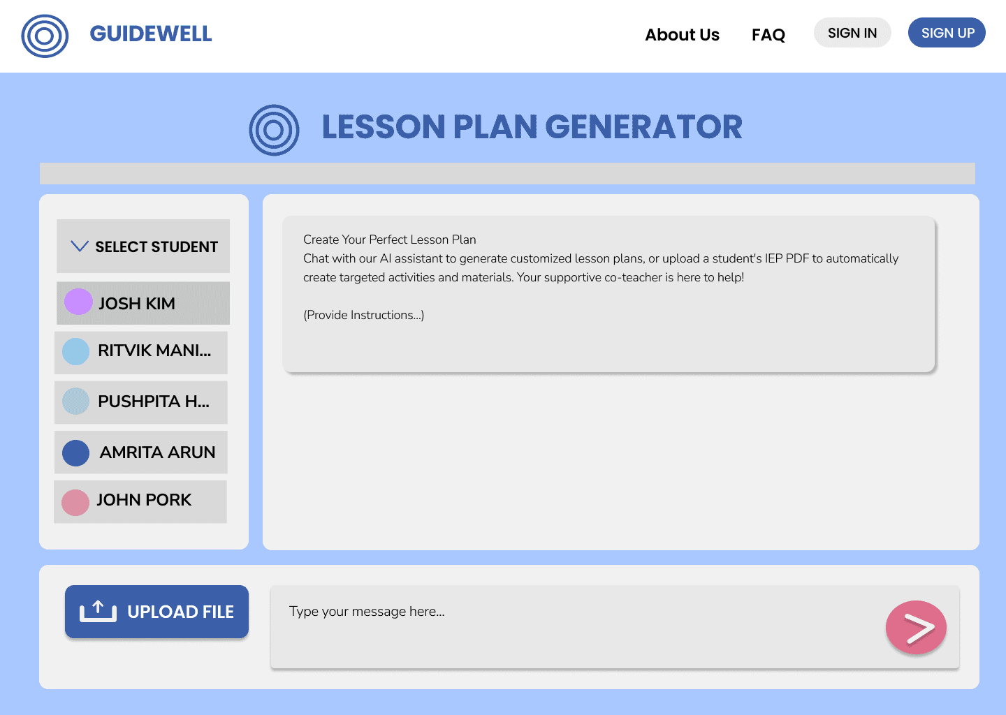 Guidewell is an EdTech platform designed to help K-8 teachers translate Individualized Education Plans (IEPs) into clear, actionable lesson guidance. The goal was to reduce cognitive overload and simplify documentation workflows for educators who may not be tech-comfortable.